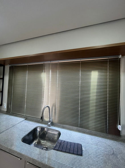 Também muito prática, a persiana horizontal é produzida com lâminas de alumínio, o que proporciona leveza e alta durabilidade ao produto.
